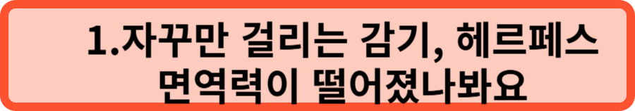 첫 번째로 눈여겨봐야 할 것은 자주 걸리는 감염입니다. 예전에는 멀쩡하던 우리가 요즘 들어 자주 아프다면 주목해 볼 필요요가 있습니다. 갑자기 대상포진이 생긴다거나, 입술 주변에 포진이 자주 올라온다거나, 눈에 다래끼가 반복해서 나타나는 경험 다들 한 번쯤 있으시죠?