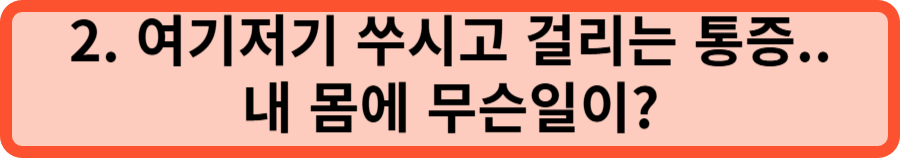 급성 통증과는 달라요, "아 ! 너무 아파!" 하는 게 아니라 "어디가 불편한데..." 하는 모호한 통증이 자주 찾아옵니다. 허리가 살살 아프고, 무릎이 삐근하고, 어깨가 결린다는 분들 많으시죠? 이런 은근한 통증이 반복된다면 만성염증을 의심해 볼 때예요.