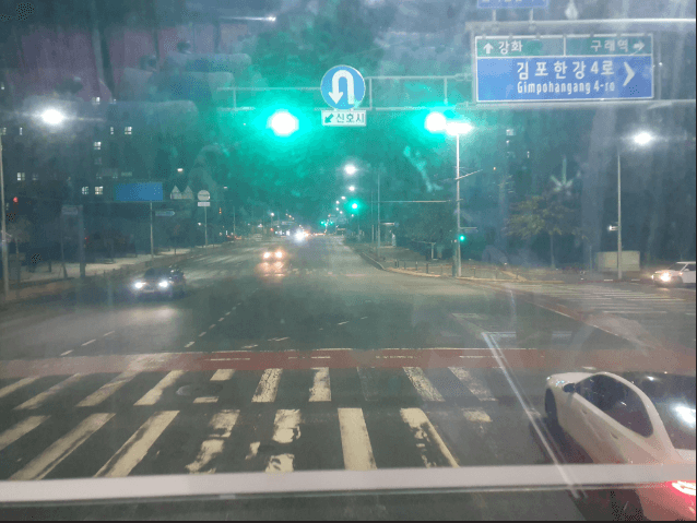 조금 넓은 시트와 충분하게 다리를 펼 수 있는 맨 앞자리여서 그런지 편안하였습니다. 비록 운행연수가 있는 버스였지만, 승객들을 위한 기본적인 편의성은 잘 유지되어 있었습니다. 창밖으로 보이는 도로 표지판들과 신호등이 더욱 가깝게 느껴져 독특한 경험이었습니다.